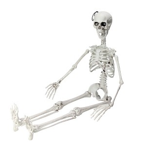 Scare your Halloween guests with this posable hanging skeleton decoration. It will be a perfect addition to any haunted house or as part of your home and office decorations. Pair it with our life-size skeleton!