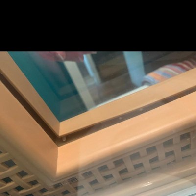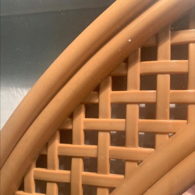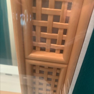 I ordered this online and was very disappointed when it arrived. It's described as glass and rattan, but the rattan frame looks like a thick, shiny, cheap plastic - like a little kid's toy. Returning immediately.