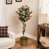 Brighten any indoor setting with this potted green and pink artificial azalea flower tree, a lifelike arrangement designed to deliver lasting botanical style. This artificial tree features a lush canopy of vibrant pink azalea blossoms nestled among realistic green leaves, creating a visually appealing display that captures the essence of springtime. The layered blooms offer a burst of color while the foliage mimics the texture and variation of natural leaves. Set in a stable pot for easy placement, this azalea tree works well on or floors in both home and office environments. Fit it into corners or entryways where it will still stand out with its bright, cheerful design. Crafted from high-quality materials, the flowers maintain their shape and color over time, requiring no watering, pruning, or sunlight. The blend of green foliage and pink blooms complements a wide variety of interior styles, from modern and minimalist to classic and farmhouse-inspired spaces. Ideal for year-round decorating, the artificial azalea tree adds natural color without the maintenance of a live plant. Whether placed solo or alongside other artificial greenery, this potted floral tree creates a charming accent in any room.