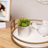 Succulents have become a growing trend as they are easy to care for and require little attention. This artificial succulent arrangement is even better as it looks real but requires no maintence. The green and red succulents are nestled inside of silver pot. Grab yourself one or two of these succulents today to add some character to your home or office.