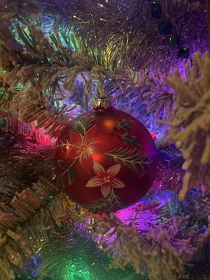 Northlight Poinsettia and Holly Glass Christmas Ball Ornament - 4" - Red