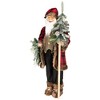 Bring the warmth of the holiday season to your home with a charming Santa dressed in a cozy red and black plaid coat and matching hat. His outfit is complemented by a beige and brown gingham vest, black pants, and faux fur-trimmed boots. Holding a flocked wreath in one hand and a snow-dusted alpine tree in the other, this Santa figure brings rustic charm and winter magic to any space.