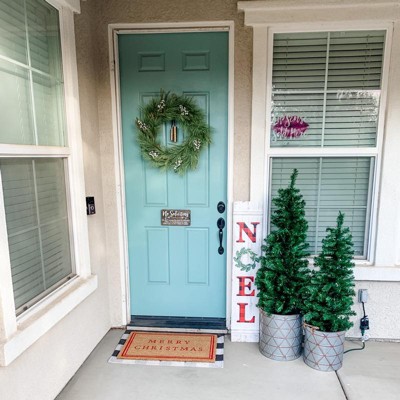 This porch leaner is super cute! Looks great on my porch and I love the metal wreath for the O!