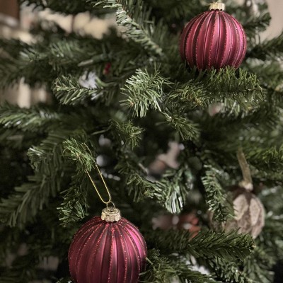 Crafted with meticulous attention to detail, these ornaments boast a stunning maroon hue that shines and sparkles when caught by the twinkle of holiday lights. The lined ribbed texture, adds dimension and visual appeal to your holiday trees. Adorn your wreaths and garlands to instantly elevate your festive ambiance, or add to a centerpiece. Pair with our maroon glass onion holiday ornament set for a complete look.