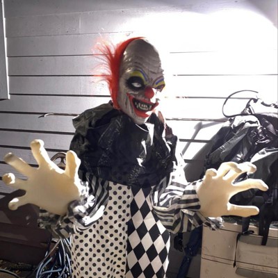 Your fear of clowns has just reached a new level with this animated Halloween clown. He will frighten everyone he encounters, with his devious smile and haunting sayings. Convenient motion and sound activation allow this creepy fellow to lie in wait ready to scare unsuspecting trick or treaters as they approach him. It is a perfect addition to any haunted house or as part of your home and office decorations!