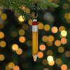 Add a touch of whimsical charm to your holiday decor with this pencil glass ornament. This classic pencil design brings back fond memories of school days, while its vibrant red glitter eraser and shimmering gold glitter accents create a festive sparkle. Complete with a realistic pencil tip, this ornament is the perfect addition to your holiday tree, showcasing your love for timeless style and a dash of holiday magic.