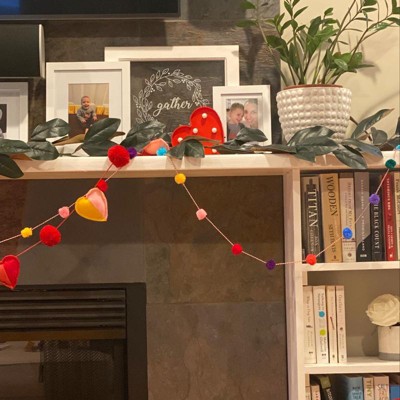 Spread cheer, love, and joy!! Make your Valentine’s Day celebration one to remember with this fun LED heart marquee sign. This unique accent piece comes ready for hanging with a keyhole hook at the top. The sign is lined with warm white lights that give off a soft glow, and requires 2 AA size batteries.