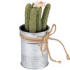 Perfectly perched on top of one cactus in a tin planter with a twine bow