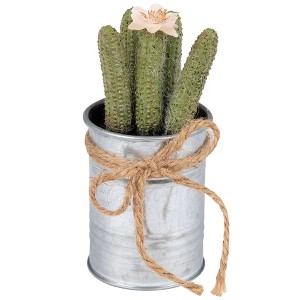 Northlight 6" Columnar Cactus Artificial Potted Plant - Green/Silver