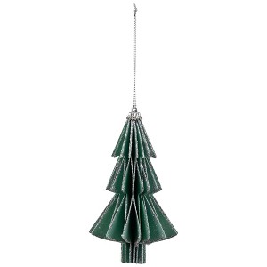 Add a touch of whimsy with this simple yet elegant ornament. It features a green 3D holiday tree with silver glitter accents. This ornament will add a little sparkle to your tree, your mantle, window, or anywhere you wish to add a little bit of flair.