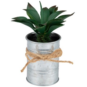 Northlight 7" Tropical Artificial Foliage in Tin Planter - Green/Silver