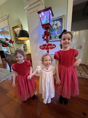 Let it snow! Bring the magic of outdoors inside and create a winter wonderland in your living room with this classic street lamp. The street lamp is red in color, decorated with a wreath and a sign that reads "LET IT SNOW". There is also a holiday tree with a lighted star in the water globe. You can place this street lamp in any room in your home that has that empty space in need of a festive touch.
