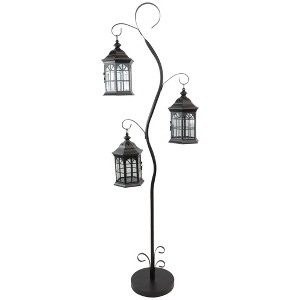 Northlight Distressed Scroll Candle Lantern Tree with Lanterns- 71.5" - Black