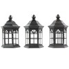 This candle lantern tree set features a distressed matte black finish and a graceful scroll design that adds character to any space. The included mission-style lanterns each hold one candle and have hinged doors for easy access. A sturdy ring at the top of each lantern makes hanging simple, whether used indoors or out. The set includes one tree stand and three lanterns, offering a timeless way to showcase candlelight with a hint of rustic charm.