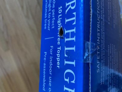 Was excited to receive this topper for our tree this year. It arrived early by a few days but was in a Box that looked like someone had played soccer with it. The plastic was broken the cardboard was ripped. It had clearance stickers that had been torn off of it and Christmas glitter stuck to it. It was obviously a return. This is very disappointing. and actually kind of gross.