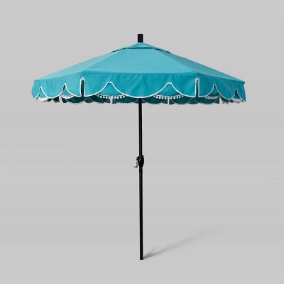 Stay shaded and cool this summer with our moderately sized market umbrella. Ideal for covering a 48-inch or four-person dining set. Features a sturdy, powder-coated aluminum frame with steel ribs, built to last a lifetime. The crank opening and push-button tilt mechanism allow for ease of use.