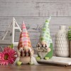 Gnomes are best known for guarding Earthly treasures, providing good luck, and are perfect for protecting your goodies. This gnome is wearing a pink and orange plaid hat with a tan sweater. Her large bulbous nose pokes out from her hat with long white braids. Place this gnome on your mantle, or alone on any table for the perfect Spring or Easter decoration.