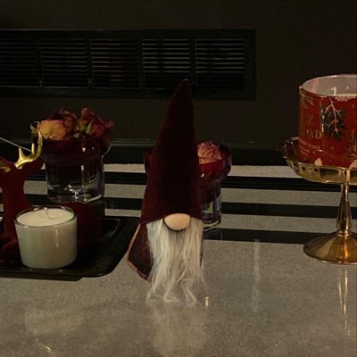 Gnomes are best known for guarding Earthly treasures, providing good luck, and are perfect for protecting your holiday goodies. Features a felt material plum-colored hat and body. Just perfect for placing by your holiday tree, on a tabletop, or a mantle.