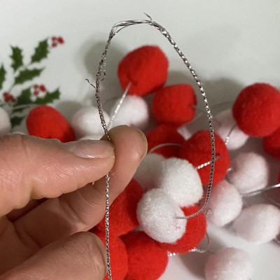 Northlight 9' Red and White Plush Snowball Christmas Garland