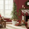 Embrace the holiday spirit with this artificial holiday tree, complete with a charming burlap weighted base. Crafted to capture the timeless beauty of a natural pine, this meticulously designed tree boasts lifelike foliage that cascades elegantly downwards, evoking the cozy atmosphere of a winter wonderland. This tree offers the perfect centerpiece for your holiday celebrations year after year.