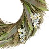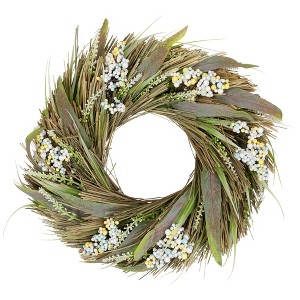 Embrace the essence of spring with our artificial spring wreath. Crafted with care, this vibrant wreath features a harmonious blend of grass blades and mixed greenery, creating a lush and natural appearance. The delicate pastel puff berries add a touch of whimsy and elegance, making it a perfect addition to your home decor. Welcome the season with this enchanting wreath that brings the beauty of nature to your doorstep.
