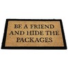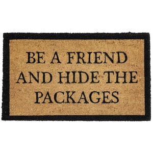 Instead of a boring old Welcome, identify your special request in style and a unique way. This mat has a black border with a beige center that says "Be A Friend And Hide The Packages", a perfect addition to your front porch when your mail carrier delivers your orders. You can also give this mat away as a gift for a new homeowner.