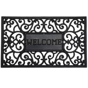 Welcome guests with this authentic doormat! It features a black scrollwork design around the outside and the word "Welcome" at the center. This doormat has been made for long-lasting durability and color.