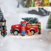 The bringing home the tree holiday village display piece captures the heartwarming moment of family teamwork during the holidays. Covered in faux glittered snow, this charming piece depicts all hands on deck to unload the holiday tree, creating a nostalgic and joyful scene. With its single-piece design, placement is a breeze, making it a delightful addition to your holiday decor. Relive the feel-good tradition of bringing home the holiday tree with this enchanting display.