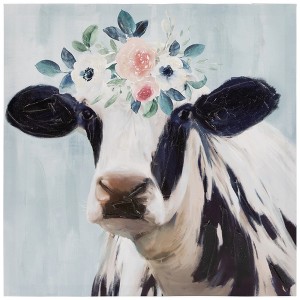 Northlight Cow with Flowers Canvas Wall Art, 17.5" x 17.5"