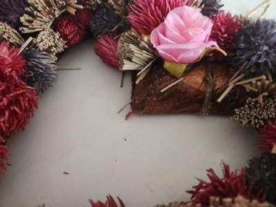 Northlight Floral and Twig Artificial Heart Valentine's Day Wreath - 13.5" - Pink and Purple