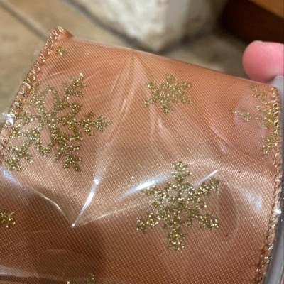 Gold ribbon features gold glittered snowflakes and trim