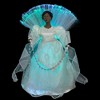 Add a magical touch to your holiday decor with this lighted Angel holiday tree topper. This stunning angel is dressed in a beautiful white gown, adorned with lace and iridescent glitter swirl details that catch the light perfectly. The metallic silver chain, embellished with clear faux crystals, adds a touch of sparkle and elegance. The continuously changing multi-color fiber optics bring a vibrant and enchanting glow to her fan back and skirt, creating a mesmerizing display that will captivate and delight all season long.