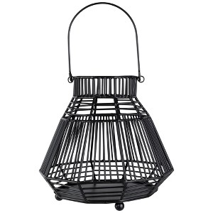 Northlight Medium Iron Geometric Hurricane Candle Lantern - 8.25" - Black