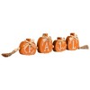 Add a touch of autumn charm to your table with this Fall Harvest decoration. Featuring four vibrant orange pumpkins connected by a rustic jute rope, each pumpkin showcases a white embossed letter spelling out "Fall." Enhanced with a faux straw bow and wood bead accents, this piece perfectly captures the cozy spirit of the season.