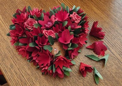 Northlight Mixed Floral with Wooden Flowers Artificial Valentine's Day Heart Wreath - 12.25"