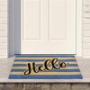 Greet your guests in style with this striped "Hello" outdoor mat. Thick and durable coir fibers are perfect for wiping feet and for high-traffic areas. Made from durable coir brush mat fibers, it will withstand your family and friends' foot traffic.