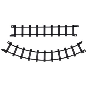 Enhance your train set experience with this pack of 12 black replacement train set track pieces! These track pieces are perfect for expanding your train set or replacing old or worn out pieces. Compatible with most standard train sets, these track pieces are easy to connect and assemble, allowing you to create endless track configurations for hours of fun and imaginative play.