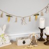 Create a charming seasonal display with this plush rabbit and carrot twine Easter garland. Accented with tassels and wood beads, this decorative garland brings a whimsical and rustic feel to any space. Ideal for mantels, shelves, or doorways, it complements Easter and spring decor with its soft textures and playful design. The garland's natural palette make it perfect for hanging on a mantel, on a wall, or draped on your staircase.