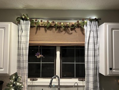I knew this garland wasn’t going to be fluffy, but it’s very sparse. The greenery is plastic. The one I received is 48 inches. It might look okay if layered with another fluffier garland. It only has a loop on one end for hanging. If I keep it I will attach some twine or ribbon on the other end so I can secure it to the mantle.