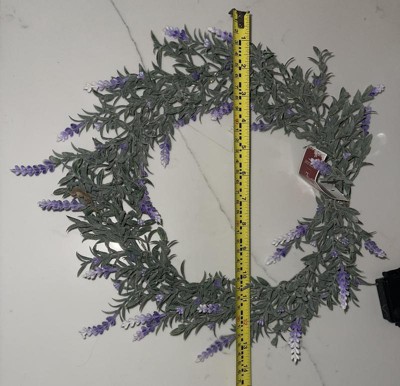Add a soft touch to your spring decor while adding a pop of color with this Lavender wreath. The realistic white and purple Lavender is intertwined with green foliage to offer a more realistic look. Accented with white LED fairy lights for an added sparkle to any decor. Hang on any wall or door or use as a centerpiece with your favorite candle in the center.