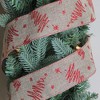 - Red And Beige Tree Wired Christmas Craft Ribbon