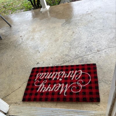 Northlight Red and Black Plaid "Merry Christmas" Natural Coir Christmas Outdoor Doormat 18" x 30"