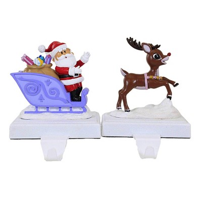 Northlight Santa and Snowman Sleigh Ride Christmas Stocking Holders - 4.25" - Set of 2