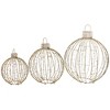 Create a magical display this holiday season with these ornament decorations. This set features three different size ornaments with glittered tops. Each ornaments is gold and silver in color with a beaded design. The ornaments are pre-lit by warm white and cool white LED lights. These decorations can be used both indoors and outdoors throughout the holiday season.