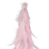 Elevate your holiday decor with this lovely feather cone tree. This charming piece is crafted with layers of delicate pink feathers, each edge kissed with shimmering purple glitter. Its freestanding design with a cone base adds stability and style to any setting. Whether adorning holiday villages, enhancing displays, or serving as a captivating tabletop centerpiece, this exquisite tree brings a touch of natural elegance to your seasonal celebrations. Grab our matching feather wreath for a complete design.