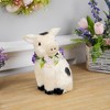 This adorable piglet figurine showcases a unique combination of an off-white body with black spots, giving it a distinctive rustic charm. The figurine is further adorned with a vibrant flower collar, adding a touch of natural beauty and a pop of color to your Spring decor. Whether displayed on a shelf, mantel, or tabletop, this enchanting piece is sure to capture the essence of the lively spirit of spring.