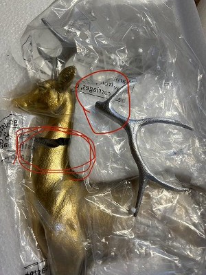 I have now ordered this reindeer set 3 times! They are very nice looking, but they have arrived damaged all three times! The cardboard box is absolute junk. Thinnest cardboard I have ever seen. They package the deer in adequate Styrofoam, but the box can NOT handle the shipping. This time the standing reindeer was decapitated and one of his antlers was broke off his detached head! VERY DISAPPOINTED! Every time...
