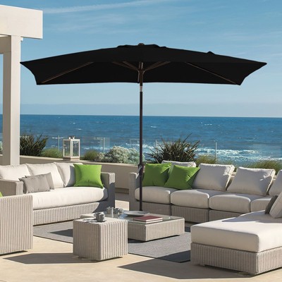 Northlight Striped Outdoor Macrame Boho Beach Market Umbrella with Tilt- 6.5' - Black and White