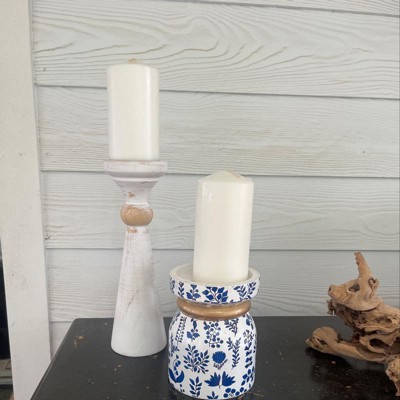 - Pillar Candle Holder In A Weathered White Hue