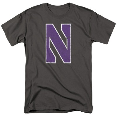 Men's Northwestern University Official Distressed Primary Adult T Shirt Charcoal 5X Large
